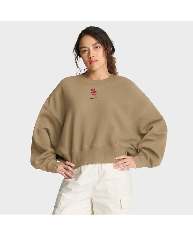 Nike Women's Tan Usc Trojans Oversized Phoenix 2-Hit Pullover Sweatshirt