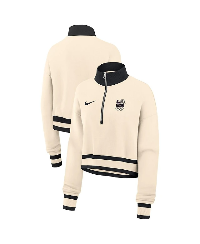 Nike Women's Heather Gray LA28 Summer Olympics Phoenix Oversized Fleece Half-Zip Cropped Sweatshirt