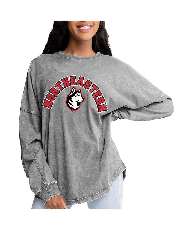 Gameday Couture Women's Gray Northeastern Huskies Faded Wash Pullover Sweatshirt