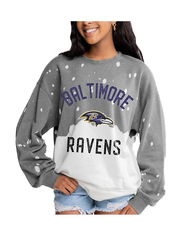 Gameday Couture Women's Gray Baltimore Ravens Coin Toss Faded French Terry Pullover Sweatshirt
