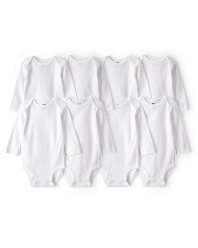 Baby 8-Pack Long Sleeve Cotton Bodysuits - White