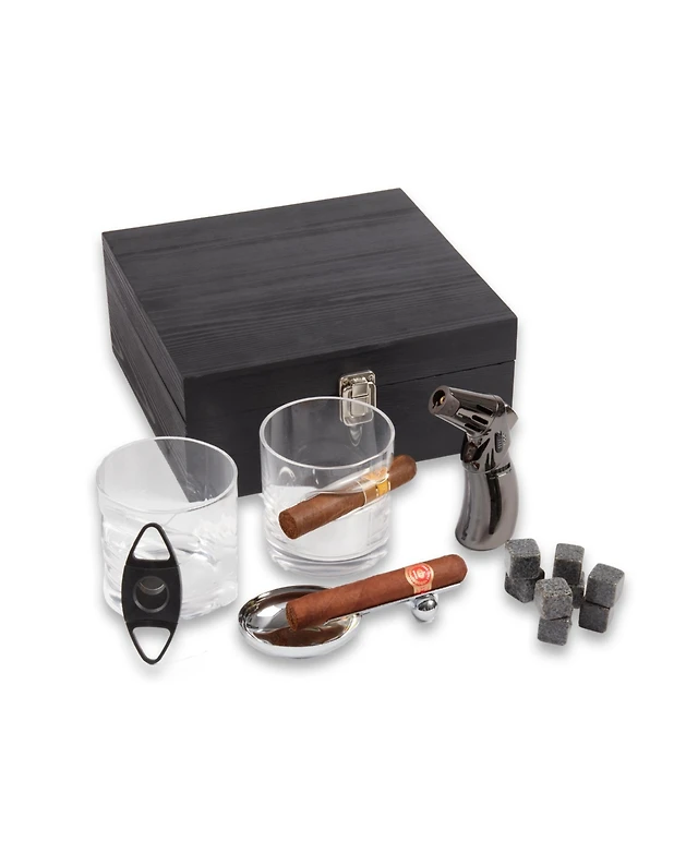 Bey-Berk Whisket Set with 2 Glasses, Stones, Lighter, Cigar Cutter, and Ashtray