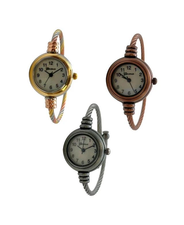 Olivia Pratt Pack #2 3-Pack Fashion Analog Bangle Cuff Wrist Bracelet Wire Bangle Women Watch
