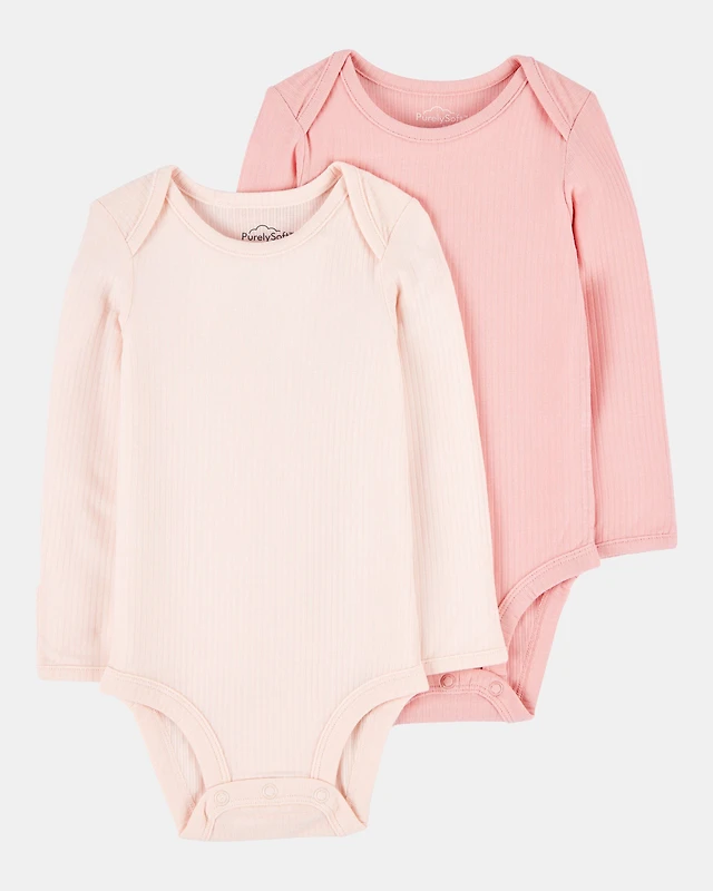 Baby Girl 2-Pack Long-Sleeve PurelySoft Bodysuits- Pink