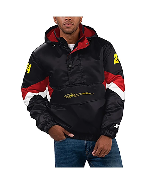 Men's Starter Black Jeff Gordon Home Team Satin Half-Zip Hoodie Jacket