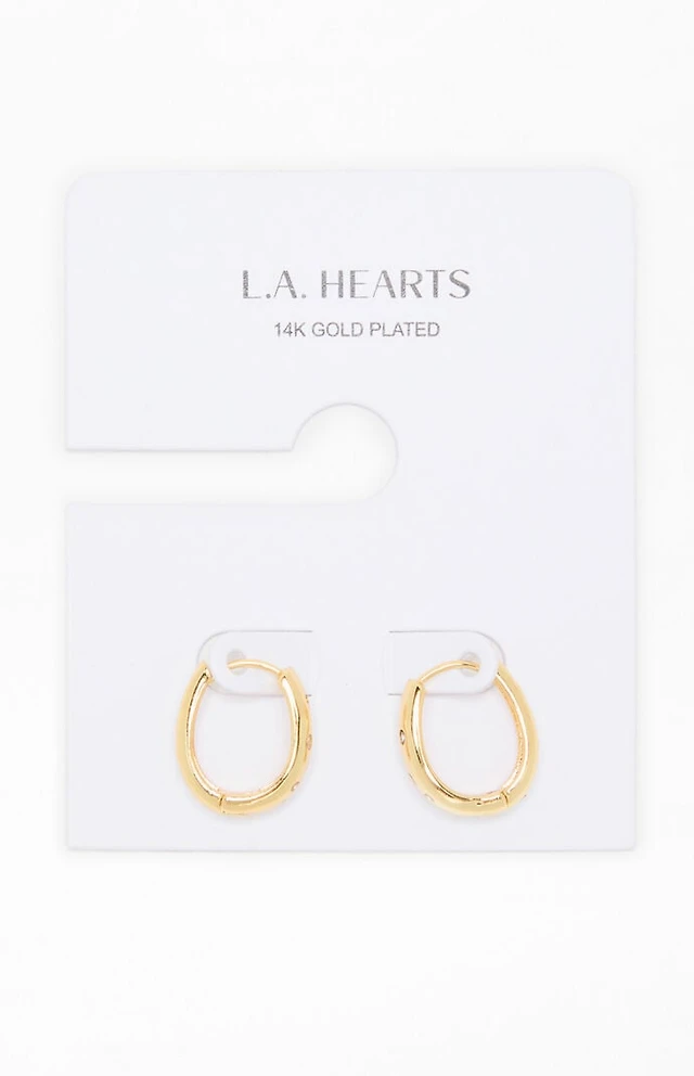LA Hearts 14K Gold Plated Oval Hoop Earrings