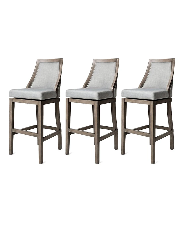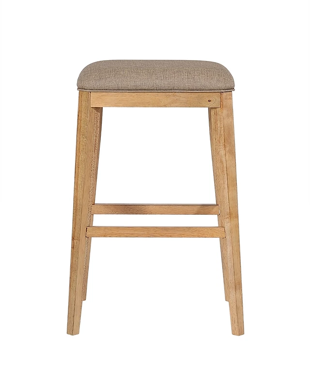 Maven Lane Pullman Backless Counter Stool in Weathered Oak Finish w/ Sand Color Fabric Upholstery, Set of 3