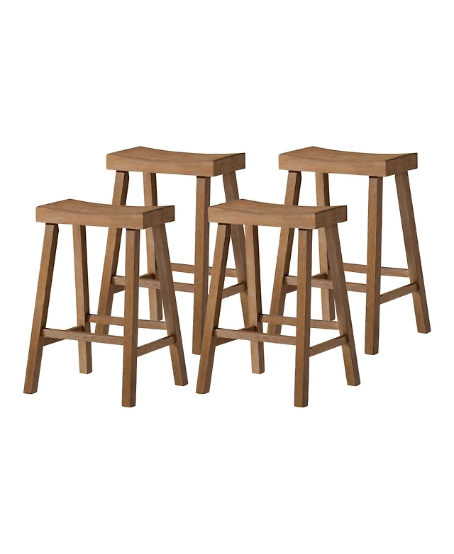 Maven Lane Adrien Backless Saddle Kitchen Stool, Natural Wood Finish, Set of 3