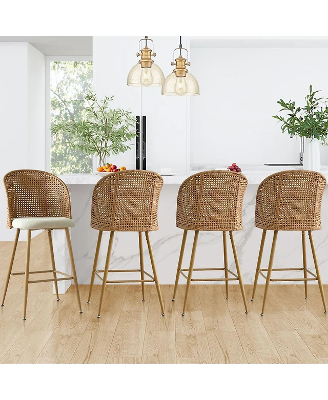 Streamdale Parisian-Inspired Aluminum Barstools with Woven Wicker