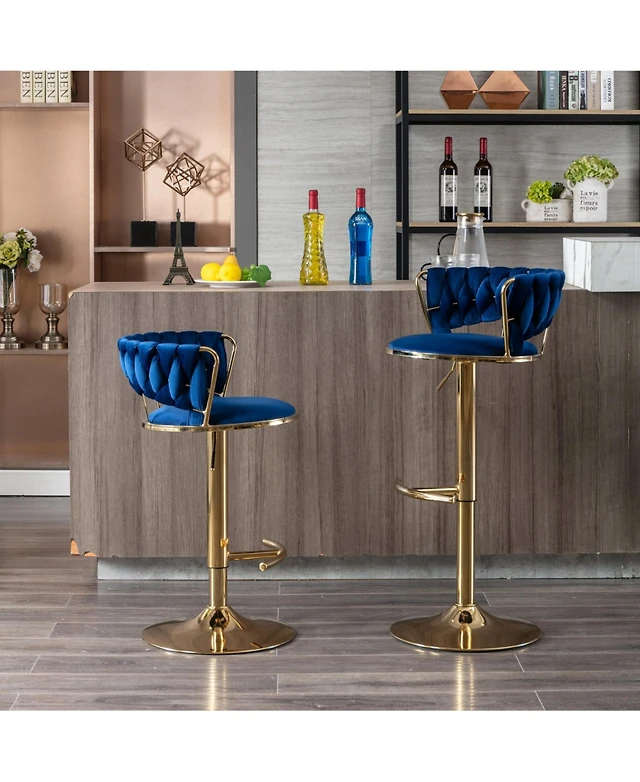 Streamdale Velvet Bar Stools, Golden Leg