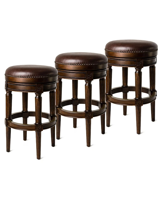 Maven Lane Pullman Backless Bar Stool in White Oak Finish w/ Natural Color Fabric Upholstery, Set of 3