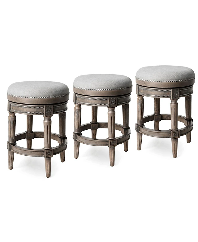 Charlotte 26" Farmhouse Fixed Height Counter Stool With Swivel in Washed Wood and Fabric by Lumisource - Set of 2