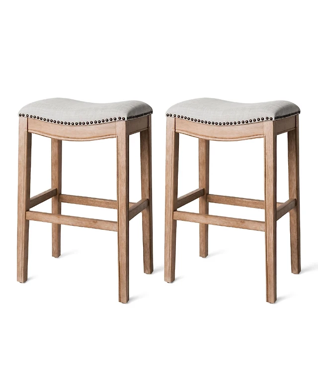 Maven Lane Adrien Saddle Counter Stool in White Oak Finish w/ Natural Fabric Upholstery