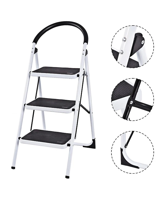 3 Step Ladder Folding Stool Heavy Duty 330Lbs Capacity Industrial Lightweight
