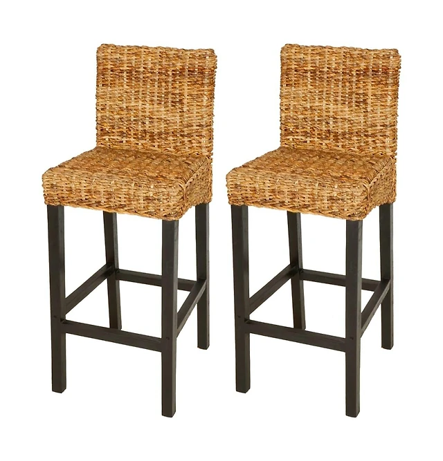 Streamdale Furniture Solid Wood Rattan-Inspired Bar Stool with Linen Cushion