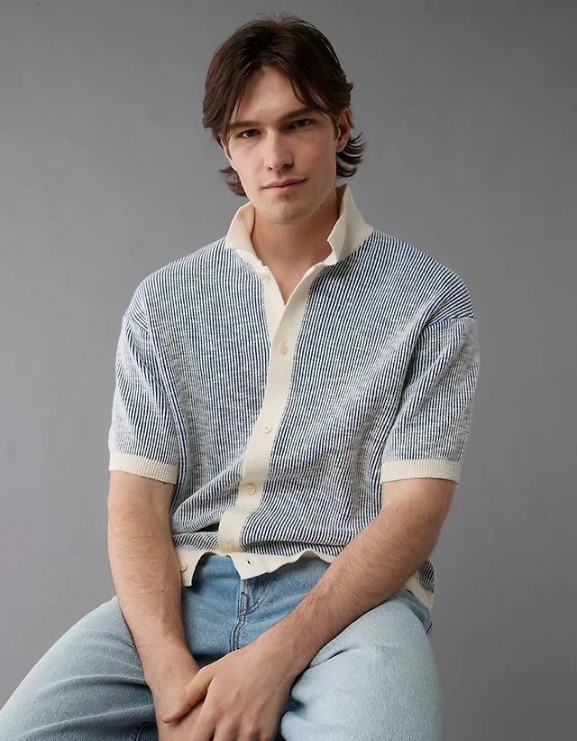 Rock & Roll Denim Men's Cactus Print Short Sleeve Button-Down Polo