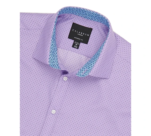 Report Collection Men's Long Sleeve 4-Way Dot Print Dress Shirt