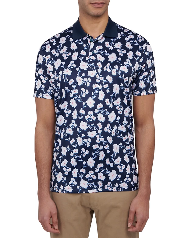 Society Of Threads Men's Slim Fit Floral Print Performance Polo Shirt