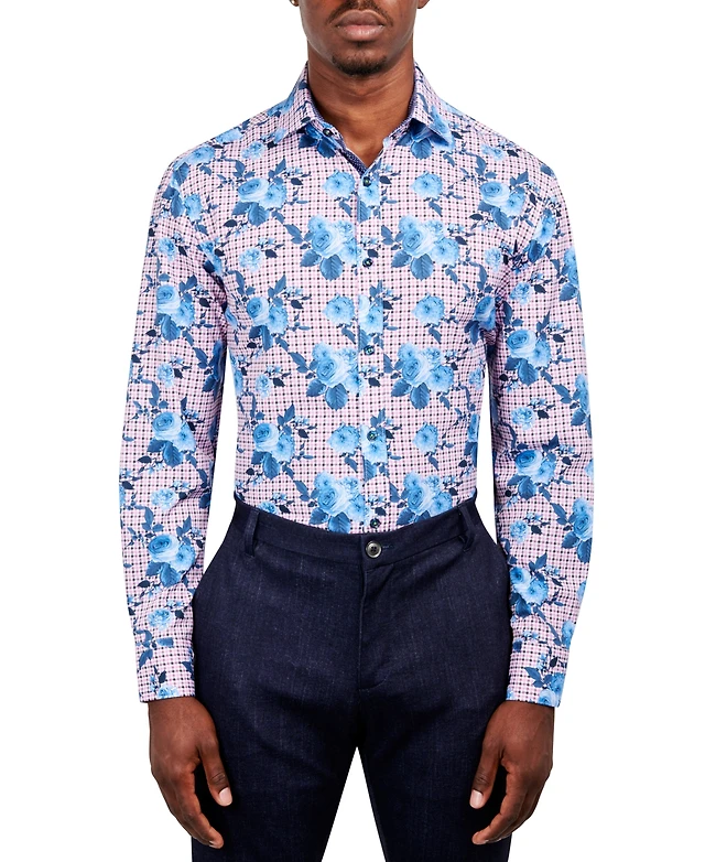 Men's Slim Fit Non-Iron Floral-Print Performance Stretch Dress Shirt