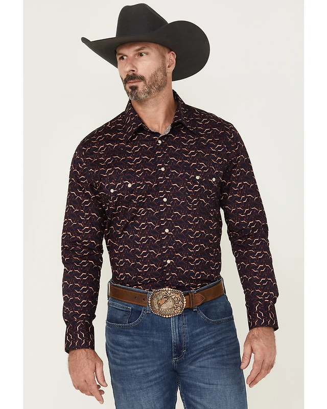 Cody James Men's Saddle Ridge Striped Print Long Sleeve Snap Western Shirt