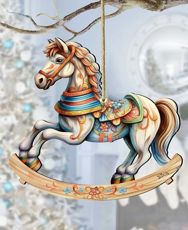 Designocracy Rocking Horse Christmas Wooden Ornaments Holiday Decor G. DeBrekht
