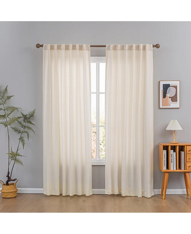 Farmhouse Textured Back Tab/Rod Pocket Sheer Window Curtain Panels