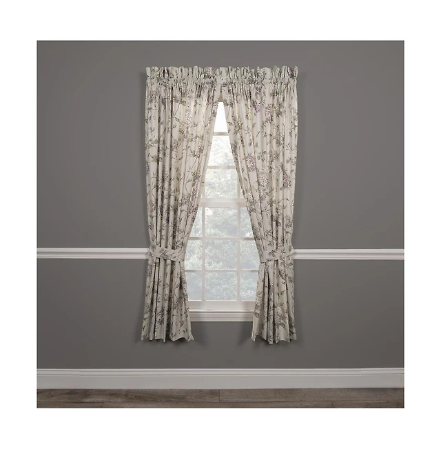 Ellis Curtain Madison Floral Printed Natural Ground 3" Rod Pocket Tailored Panel Pair with Tiebacks 56" x 84" Brick