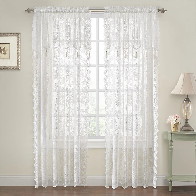 Kate Aurora Shabby Chic Lace Single Curtain Panel With An Attached Valance