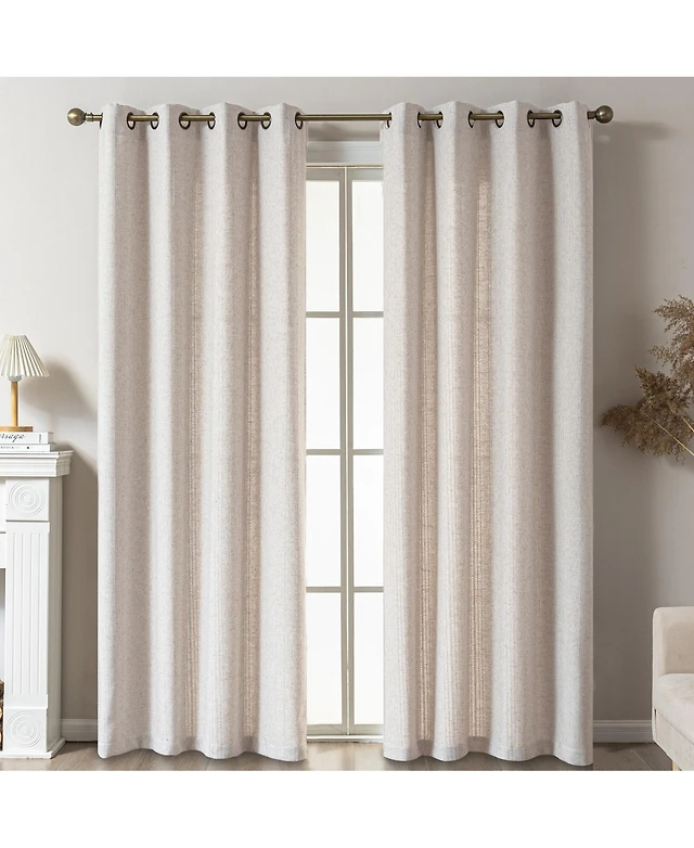 Hlc.me Herringbone Thick Semi Sheer Premium Rod Pocket Window Curtain Panels for Bedroom & Living Room