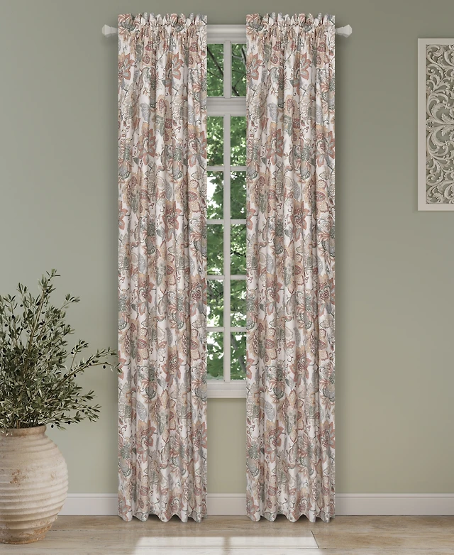 Ellis Cambridge Lined Jacquard Pinch Pleat Jacobean Floral Print Multicolor Drapery 2 Piece Curtain Panels 48w X 63l
