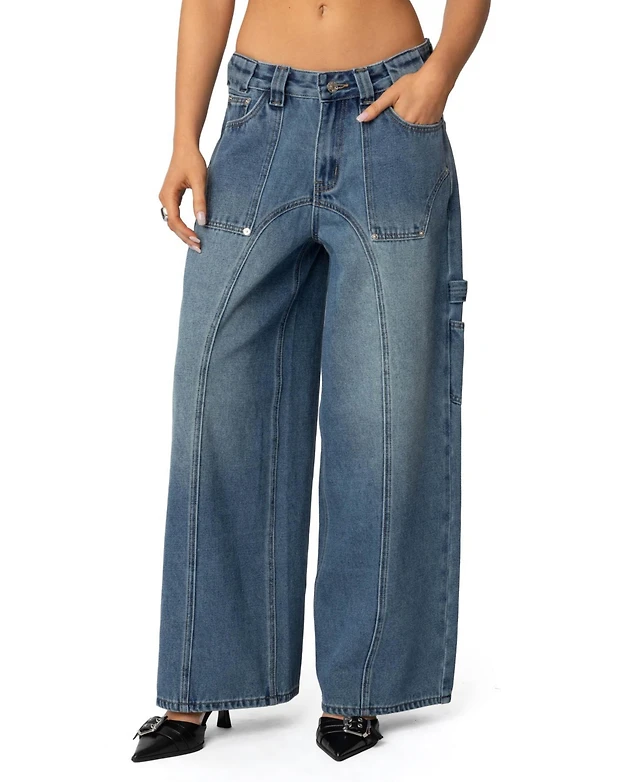 Edikted Womens Ery Wide Leg Mid Rise Jeans