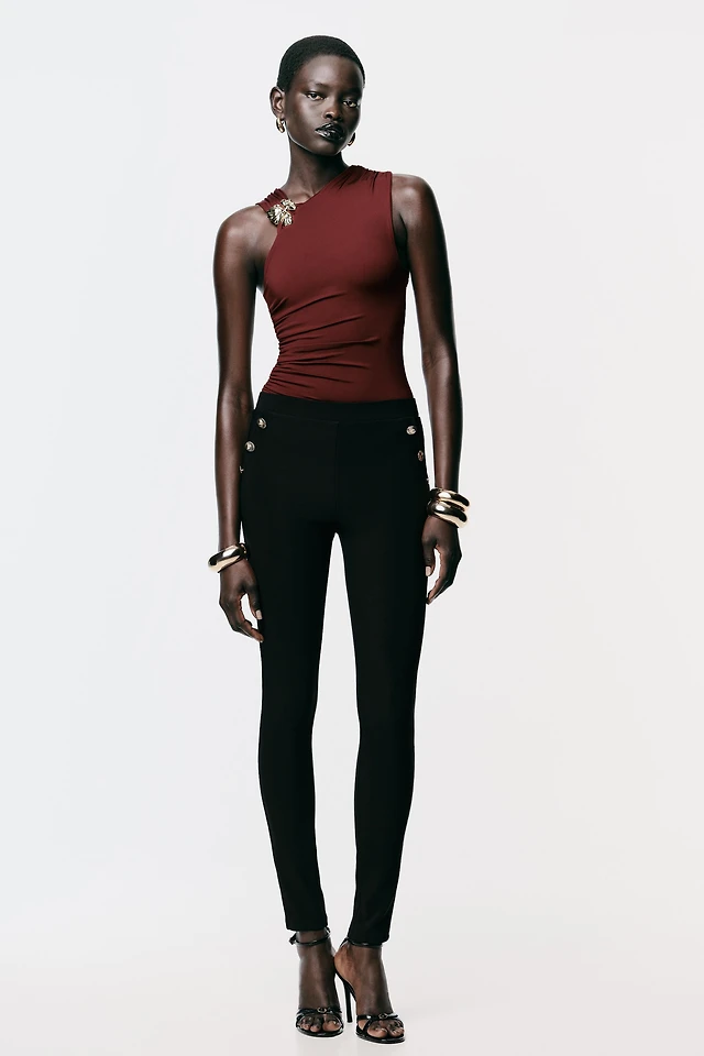 Check Trim Stretch Jersey Leggings in Black - Women, Nylon | Burberry® Official