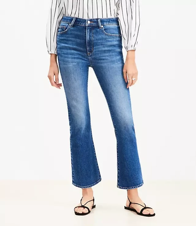 Petite Step Hem High Rise Kick Crop Jeans Classic Mid Wash
