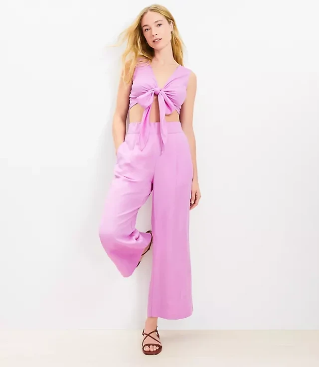 LOFT Beach Linen Blend Wide Leg Pants