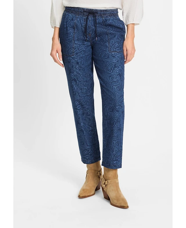 Nautica Jeans Women's Tile-Print Linen-Blend Wide-Leg Pants