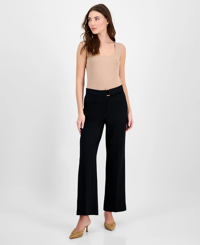 Karl Lagerfeld Paris Women's Side-Button Wide-Leg Ponte Pants