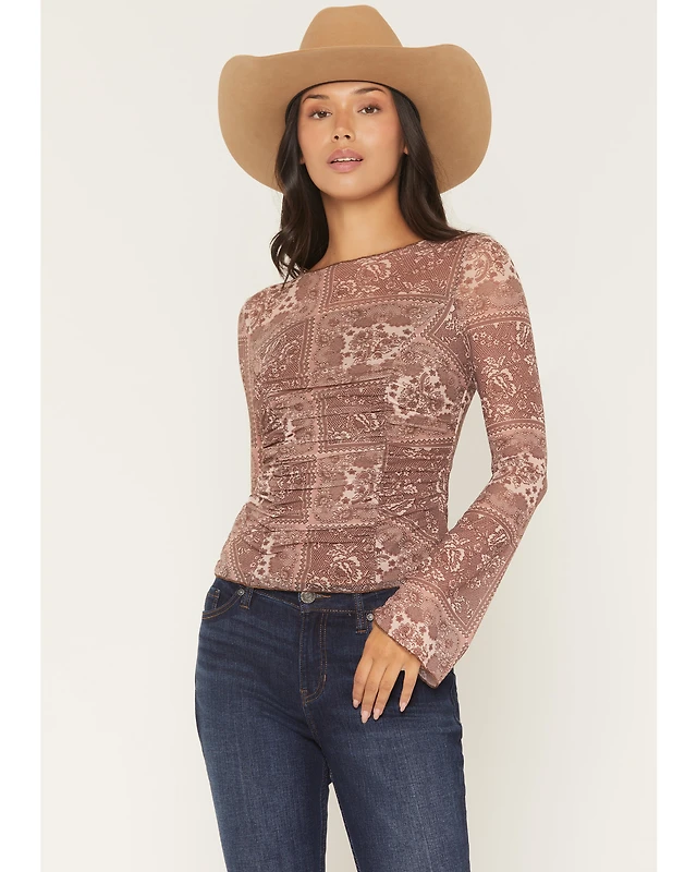 endless rose Women's Mixed Media Mesh Pleated Ruffle Top