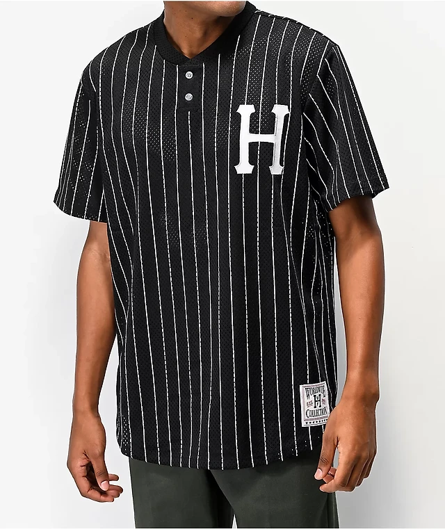 HUF Bronx Black & White Henley Mesh Baseball Jersey