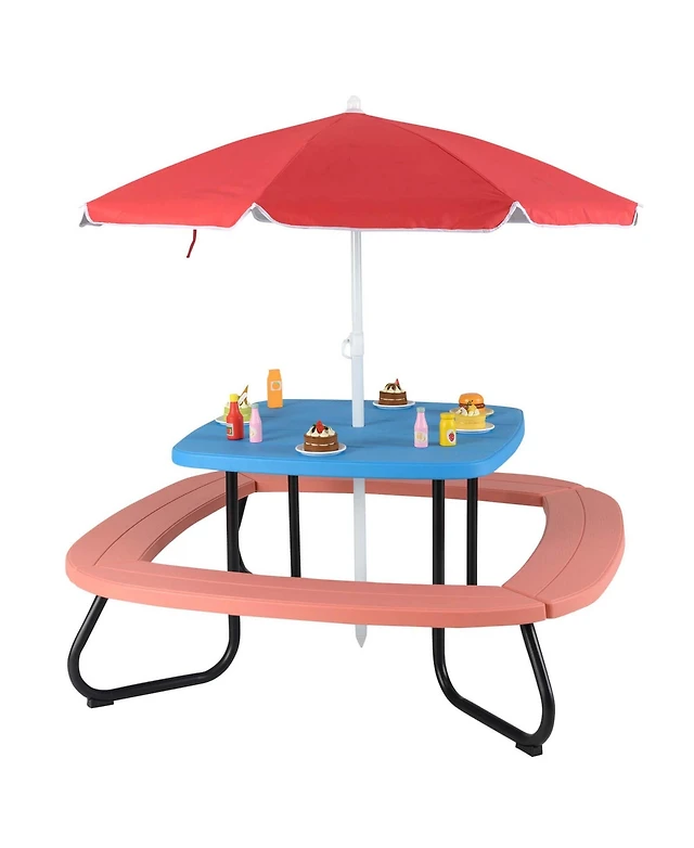 Kids Picnic Table Outdoor Activity with Adjustable & Collapsible Umbrella