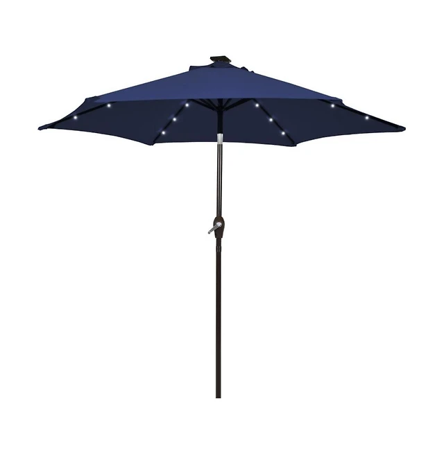 Kinsley 9 Ft Solar Patio Umbrella With Led Lights, Crank Handle And Push Button Tilt