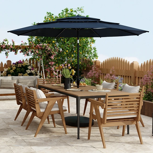 Outsunny Patio Umbrella 15' Steel Rectangular Outdoor Double Sided Market with base, Sun Protection & Easy Crank for Deck Pool Patio
