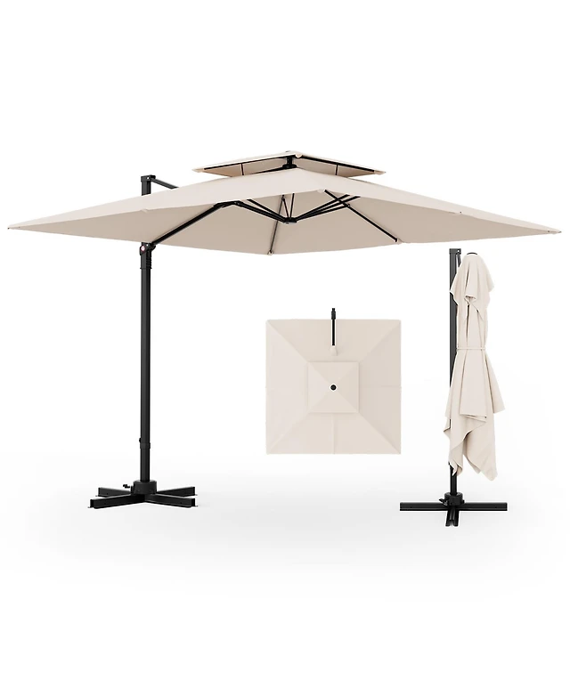 Boyel Living 10 ft 360° Rotation Outdoor Patio Cantilever Umbrella Square with Base