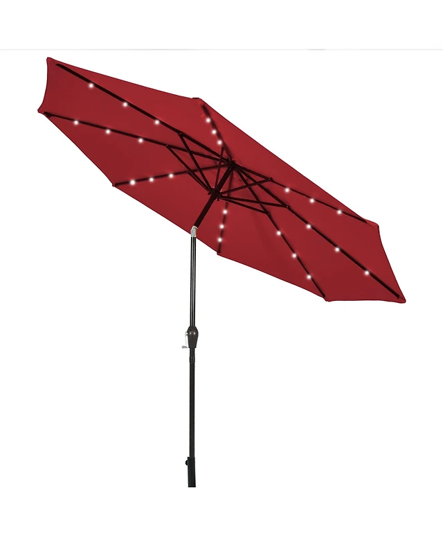 10ft Solar Power Led Patio Umbrella Market Parasol Pool Sunshade Tilt with Crank