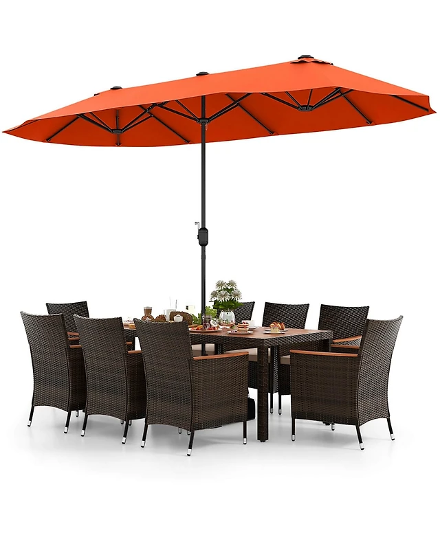Flynama Patio Umbrella 15 Steel Rectangular Outdoor Double Sided Market With Base Sun Protection Easy Crank