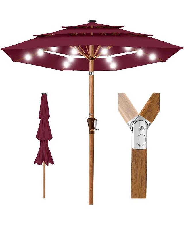 9 ft Patio Umbrella Outdoor Market 32 Led Solar with Tilt and Crank (Red)