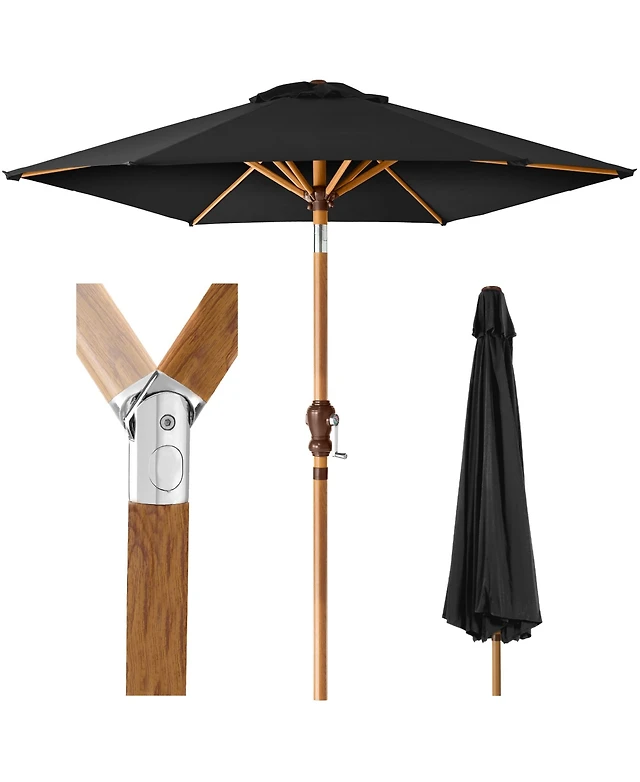 Costway 9.5 Ft Patio Rope Pulley Wooden Umbrella Market w/Fiberglass Ribs Outdoor