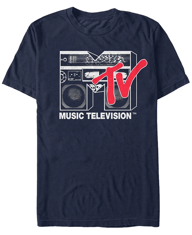 Fifth Sun Men's Logo 80's Style Black and White Boombox Short Sleeve T- shirt