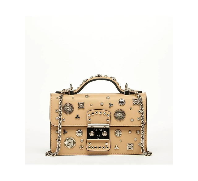 Susu Women s Pink Leather Crossbody Bag Studded Shoulder Purse with Top Handle Embellished Handbag for Evening & Casual Outfits