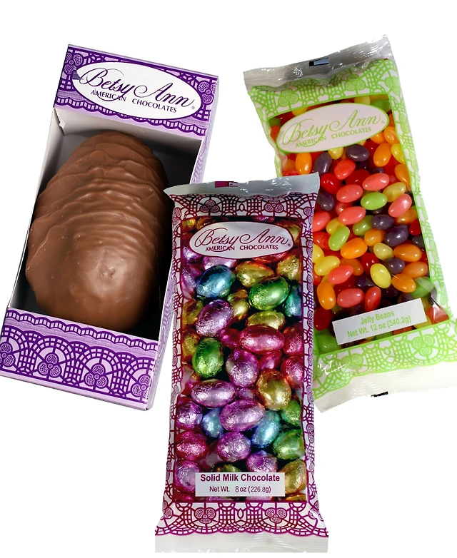Betsy Ann Chocolates Easter Jelly Beans, Milk Chocolate Foil Eggs Peanut Butter Meltaway Egg Bundle, 3 Piece Set