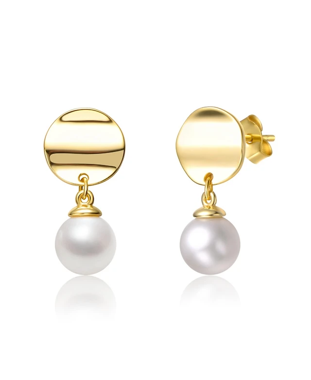 Sterling Silver with 14K Gold Plated Pearl Drop Earrings